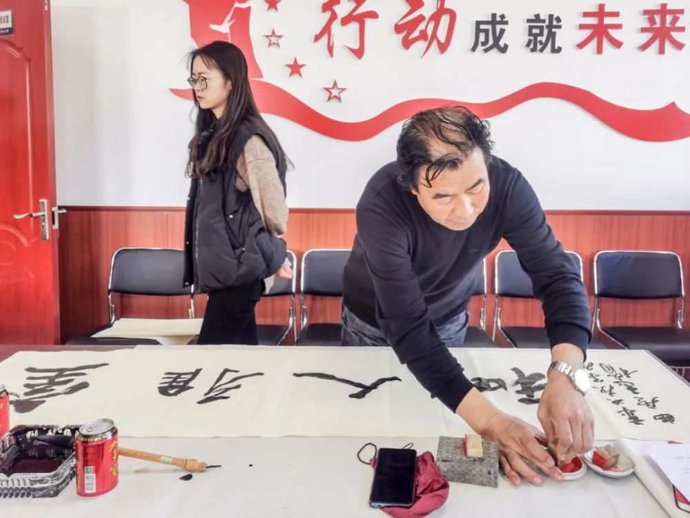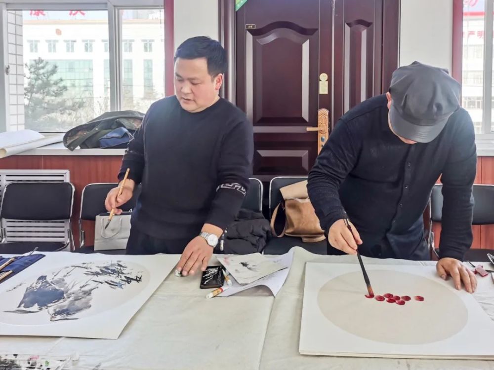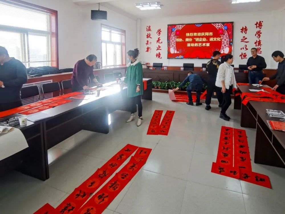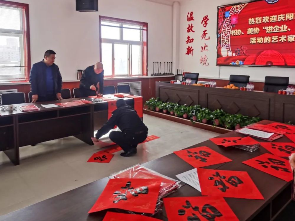 翰墨歌盛世 丹青迎新春 庆阳市文联组织书画家走进企业 开展送文化活动 晴空薄云微风起,满室翰墨一院香。 1月28日,在庆阳市金盾保安守护押运有限公司,庆阳市文联、庆阳市书法家协会、庆阳市美术家协会组织的8名书画家齐聚一堂,挥毫泼墨,翰墨迎春。 此次活动由市文联副主席、市书协主席张建昕带队,市书协副主席赵法宏、黄风贤,市书协秘书长胡光华,市书协理事王正楷、李汉峰,省美协理事、市美协副主席贺也频,市美协理事郝正远参加。在听取了公司董事长李斌斌的介绍后,大家纷纷为该企业厚植内涵文化的发展理念点赞。并将这种认同感化为笔下的真草隶篆、山川花鸟、缕缕墨香。一件件饱含深情的书画作品,传递着书画家的真情祝愿;一幅幅火红的楹联福字,表达着书画家的新春祝福。大家表示,希望通过此次活动,能够大力传播优秀传统文化,为企业营造质量第一 、诚信至上的文化氛围,提升企业文化内涵,增进传统文化与企业文化的交流与互动,让更多的人感受和领略传统文化的无穷魅力。 来源|庆阳文联