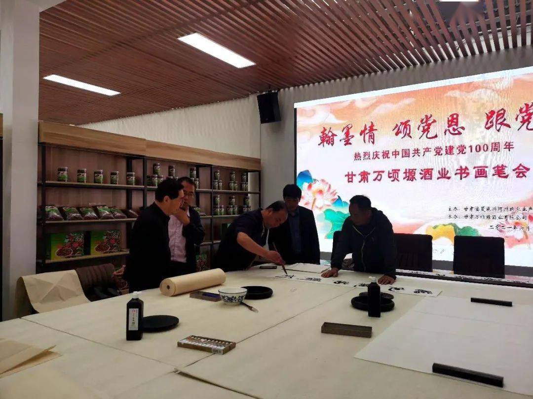 翰墨情,颂党恩,跟党走。近日,由甘肃临夏振兴河州塬农业产业发展集团公司主办,甘肃万顷塬酒业有限公司承办的“庆祝中国共产党建党100周年”甘肃万顷塬酒业书画笔会在临夏县国家级现代农业科技园区展示展销电商中心内举办。