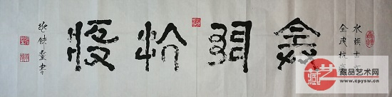 张兆铼水书“人和天地宽 家和财源旺”
