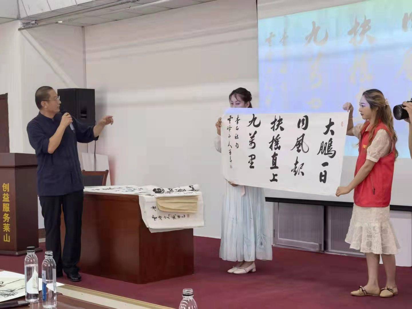 近日应中国画学会烟台创作基地、烟台国瓷馆,烟台芝罘区道德服务大队的邀请,戴丕昌教授赴烟台参加了”浓情泼墨书画,向爱出发"书画公益义卖活动。这次活动所有的义卖收入都将援助中秋佳节坚持在一线工作的环卫工人以及失独或特困家庭,今年中秋情真意满,今年月饼将格外甜。