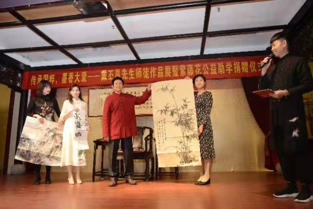 据我们了解戴丕昌教授今年五月份在济南紫藤花公益助学活动中也捐了不少书画作品。在他执教近50年的教学生涯中受他资助的学生不在少数。他不愧是山东省优秀教师,山东师德标兵,山东教学名师,不愧是德艺双馨的书画艺术家。