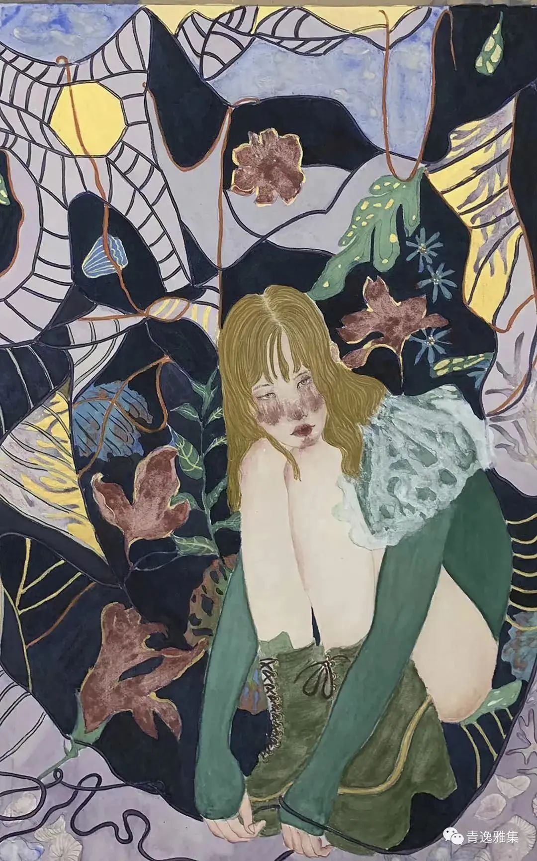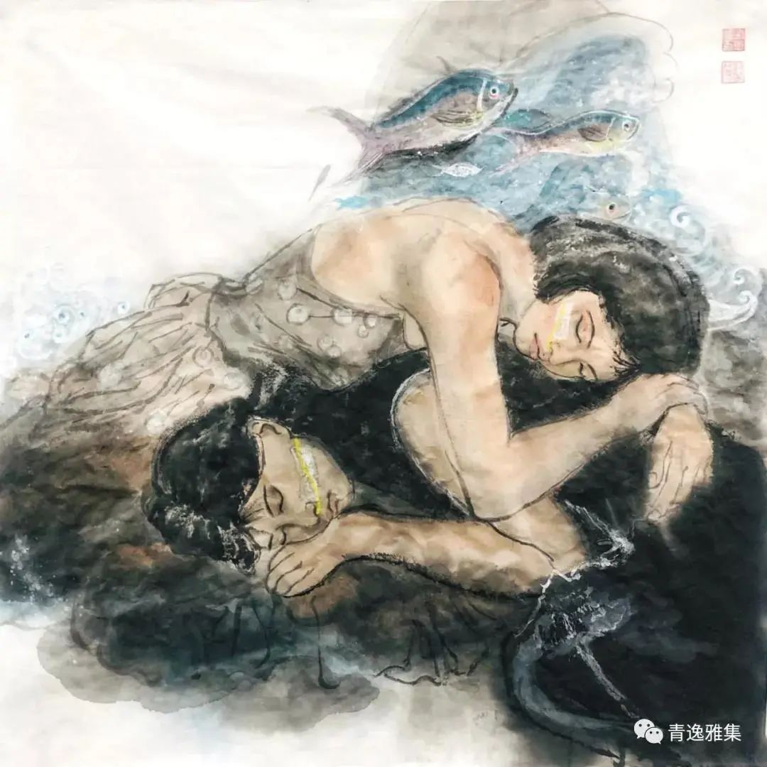 刘林林/鱼跃—愉悦/天然矿物颜料