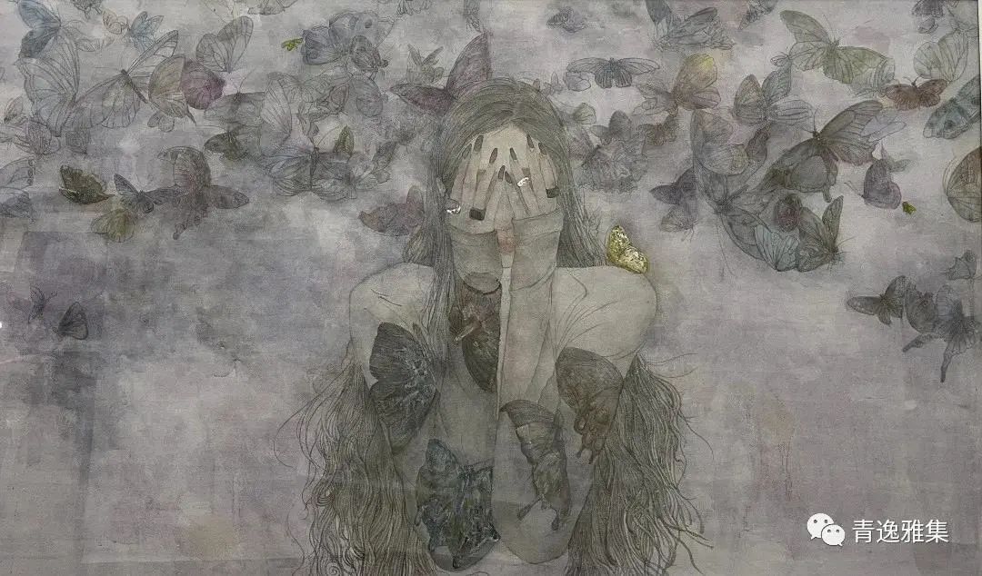 戴闻捷/《梦蝶》/纸本 工笔人物画