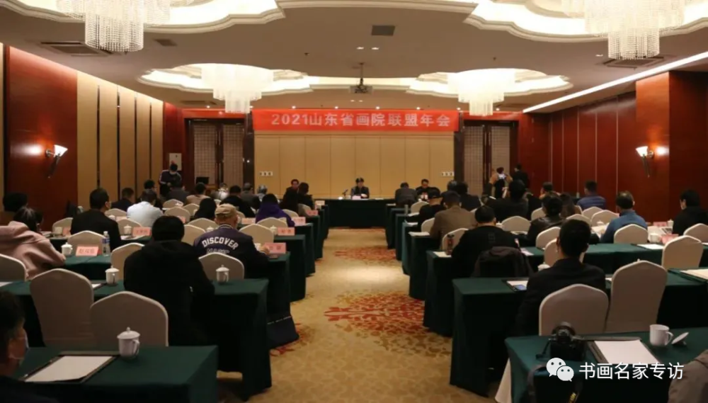 2021年10月26日上午,由山东省画院联盟、济宁市文化和旅游局主办,济宁市孔孟书画院承办的“2021山东省画院联盟年会”在济宁召开。会议以习近平新时代中国特色社会主义思想为指导,贯彻落实2021全国艺术创作工作会议精神、2021全省艺术创作工作会议精神,回顾总结2020年山东省画院联盟工作,部署安排2021年及今后一段时间的重要创作任务,推动山东美术事业繁荣发展。