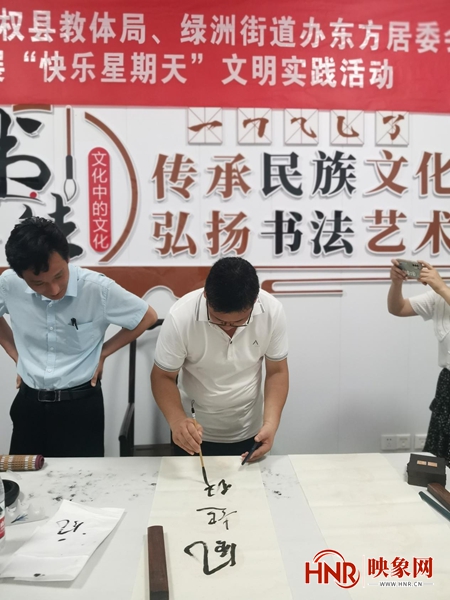 映象网讯(大象新闻记者 尚海东 通讯员 宁松 张庆峰)为丰富社区文化生活,7月9日上午,民权县教体局、绿洲街道办东方居委会组织书法爱好者结对开展“快乐星期天”书画交流文明实践活动。 “风起绿洲吹浪去,雨从清野上山来。”潘振铎现场书写的毛泽东诗词名句,引起大家阵阵掌声。活动中,卢凤勇等5名县书法爱好者,挥毫泼墨、展现风采,分享运笔技巧,交流章法布局,探讨不同书体的精气神韵和艺术风格。一点一划聚精神,一联一句传美德,将共建文明民权、创设美好家园的愿望融于端庄秀丽、潇洒飘逸的大作中。 据悉,“快乐星期天”书画交流文明实践活动,每周末集中交流一次,将吸引更多民权书画爱好者加入学习交流,并在重大节假日举行书画展进社区、进乡村,以书画为载体,传递党的声音、弘扬中华文化、丰富群众生活,实现以美育人、以文化人的目的。
