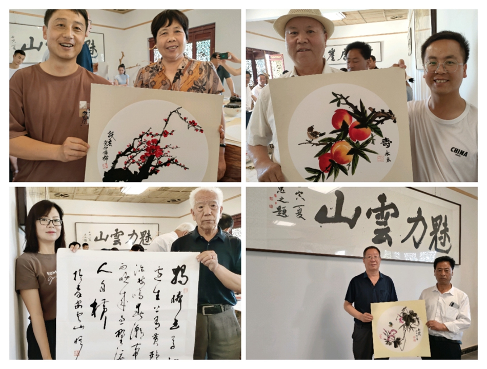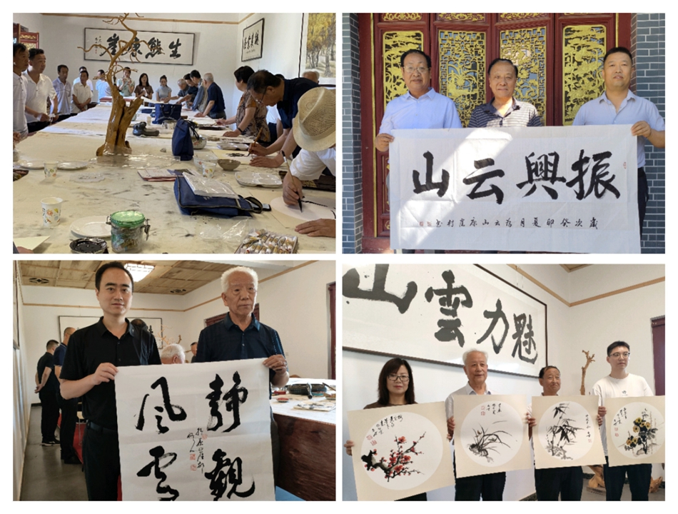 7月9日,天水市老年书画研究会临时党委在云山镇康崖村开展了送书画主题党日活动。活动通过书画艺术的交流和传播,丰富云山镇人民群众的精神文化生活,增强群众的获得感和幸福感。市政协原副主席、天水老年书画研究会会长王钦锡,县人大常委会二级巡视员李宽余参加活动。 活动中,天水市老年书画研究会会员们与当地的群众进行了面对面的交流,分享了他们对书画艺术的理解和经验。同时,现场挥毫泼墨,展示了自己的书画技艺。他们的作品以书法、花鸟、山水画等形式展示于群众面前,吸引了众多群众和艺术爱好者前来观赏。 此次送书画主题党日活动,不仅提供了云山镇干部群众与书画艺术家面对面交流的机会,也为老年人搭建了展示自己才华的舞台。云山镇的书画爱好者们纷纷表示,此次活动为他们打开了学习和交流的大门,让他们感受到了书画艺术的魅力和深厚的文化底蕴。他们将继续学习、研究书画艺术,丰富晚年生活。