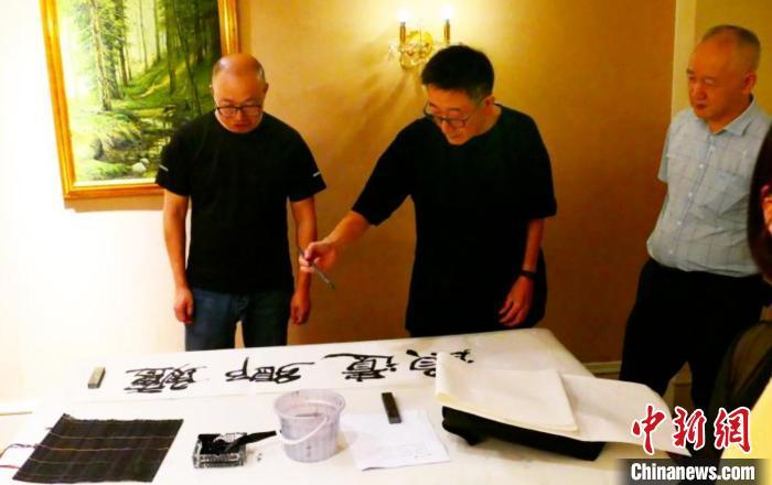 现场书法创作。 松江区委统战部供图