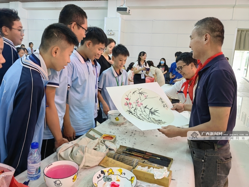 广西新闻网防城港10月4日讯(通讯员 陈姿岑 曾冬梅 王海荣)为深入贯彻落实清廉学校建设工作和“立德树人”教育方针,日前,防城港市桃花湾中学党支部联合防城港市文联、防城港市美协、防城港市书协在校内开展了“清廉书画进校园 书香正气育桃李 ”活动。此次活动旨在引领校园清廉文化新风尚,倡导崇廉尚洁价值观,以清廉书画为载体,培育学生良好的道德品质和审美情趣。 书画家们在创作清廉文化作品。桃花湾中学供图 活动邀请了当地知名书画家,以现场创作展示的形式为师生们呈现了一场以清廉为主题的书画盛宴。活动以笔墨为媒介,传递着廉洁自律、诚信守法的理念,激发了学生对美好生活的向往和对廉洁文化的认同。 书画家与学生们分享清廉文化作品的内涵。桃花湾中学供图 活动引起了热烈反响。学生们纷纷表示,此次活动近距离感受到了传统文化的韵味和魅力,让他们在欣赏书画的同时,不仅提高了自身的艺术鉴赏能力和文化素养,更在潜移默化中加深了对清廉的理解和认识。这种寓教于乐的活动形式,让清廉教育不再枯燥无味,而是变得生动有趣。为学生们今后树立正确的人生观、价值观,以及投身社会实践打下了坚实的思想基础。