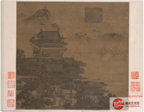 "明四家"之一唐伯虎的《黄茅小景图卷》构图奇险,用略带"写"意的长皴作太湖滨幽奇处,名曰"熨斗柄",款署"吴趋唐寅作",字体瘦硬欹侧、体势偏长,可判断大约作于二十七八岁时,此图应是今见唐伯虎画作中较早的。作成后,先为邻里、好友张灵题引首、本幅,后为明丘舜咨、曹起莘、王越石,清徐守和、吴亦先、陆沅、潘奕隽、陆恭、顾文彬等陆续收藏。