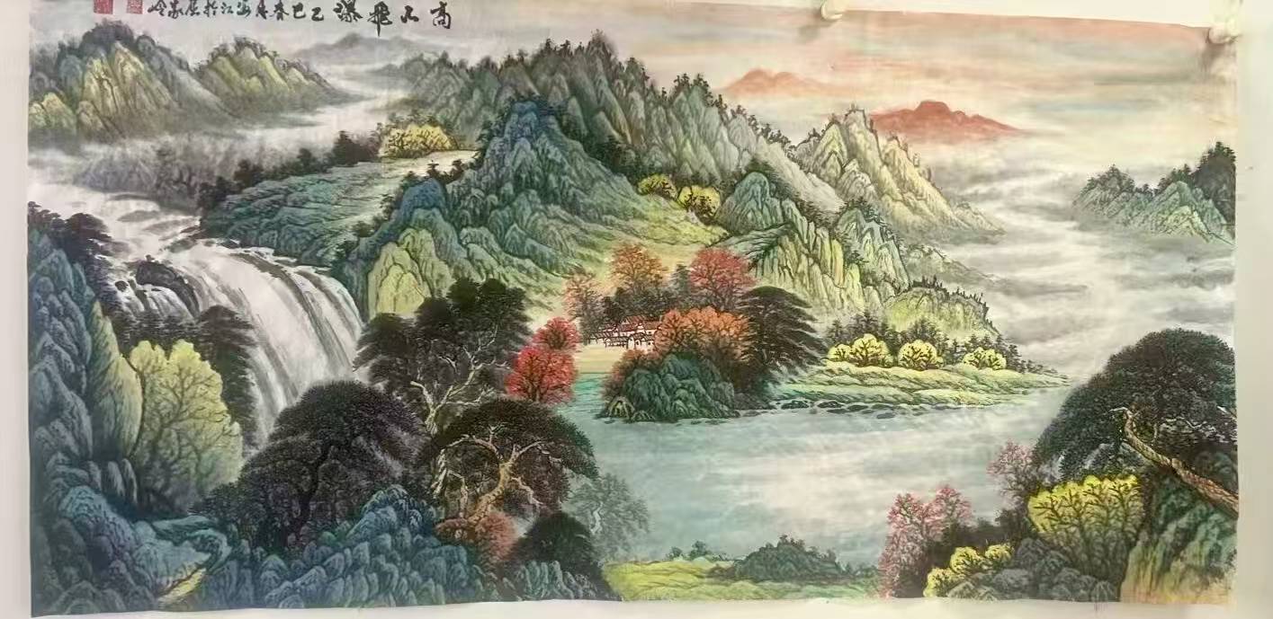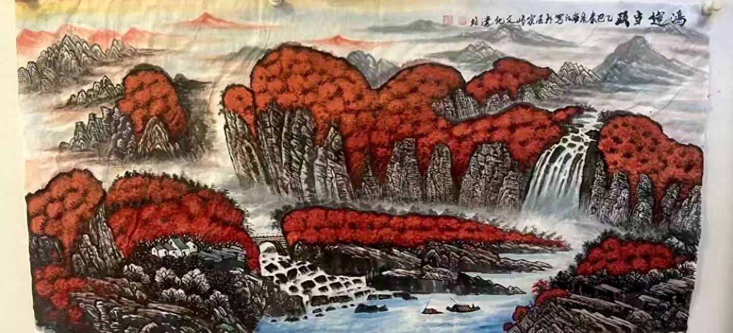 其次,他的作品充满了浓郁的时代气息与生活情趣。作为一名从基层走来、与时代同行的艺术家,他的画作既有传统的文人雅趣,更有着对现实生活的热爱与赞美。如其获奖作品《吉祥如意》,以传统花鸟题材入画,但构图饱满,色彩明快,寓意美好,洋溢着对幸福生活的向往与祝福,因而被中国文化遗产保护研究院收藏。另一幅被名人收藏的《江山多娇》,则必定是以宏大的视角描绘祖国壮丽河山,笔墨雄浑,气势磅礴,展现了他宽阔的胸襟与对家国山河的深沉爱恋。