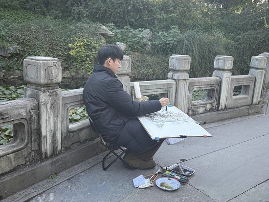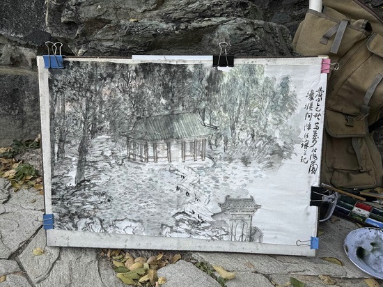 《书画里的中国》第三季的直播中,青年画家陈泽谦在北海公园的写生活动,完成了一场跨越时空的艺术对话。这场通过北京时间客户端进行的沉浸式直播,展现了一位年轻艺术家如何用传统的笔墨语言,捕捉皇家园林的永恒之美。