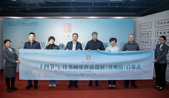 11月18日,文化和旅游国际传播项目、国家艺术基金2025年度传播交流推广资助项目——“二十四节气·诗书画乐作品巡展”(苏州站)启幕仪式在苏州太湖艺术中心成功举办。此次活动由中国数字文化集团主办,苏州市文化广电和旅游局、中共苏州市吴中区委宣传部、苏州对外文化交流促进会支持,中数文化大数据(苏州)有限公司、中数文科承办,吴中区文化体育和旅游局、苏州市吴中文化旅游发展集团有限公司、中数江南数字文化产业(苏州)有限公司协办。此次苏州站展览为全国巡展第七站,在立冬时节,为广大市民游客带来一场融合传统智慧与现代美学的文化盛宴。