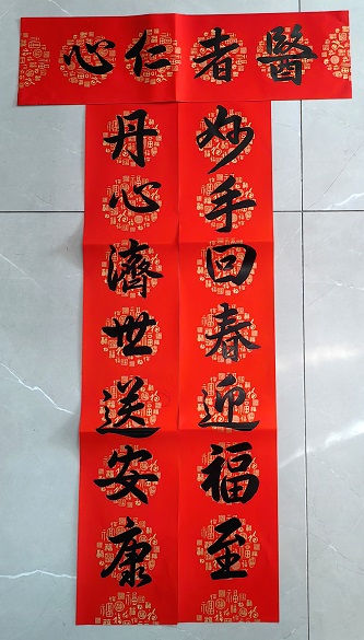 卢成林作为“大国工匠”,也在现场给予了赵艳彬全力支持。夫妇二人共同将写好的“福”字和春联赠送给医护人员,并与他们亲切交流,询问工作情况,感谢他们为守护人民健康所做出的贡献。