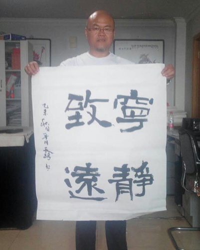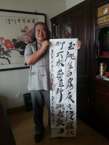 师承著名书法家王冰石先生。初学颜真卿楷书,后上溯汉魏,临习《石门颂》、《乙瑛》、《张猛龙》、《石门铭》及十余种元氏墓志,草书宗王铎、黄庭坚、张旭,深得王铎之神韵。其草书古朴苍劲,潇洒豪放,大气磅礴。