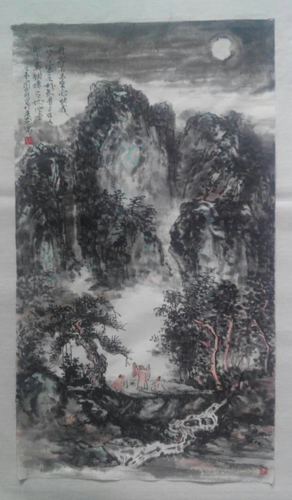9月20日,藏品艺术网组织举办“迎中秋庆国庆”主题书画笔会,书画家张成银、周兆明、李天路、王骊丁等参加。图为:山水画家周兆明创作的中秋主题山水作品