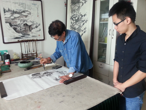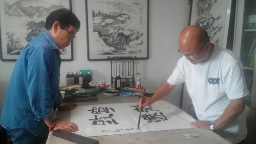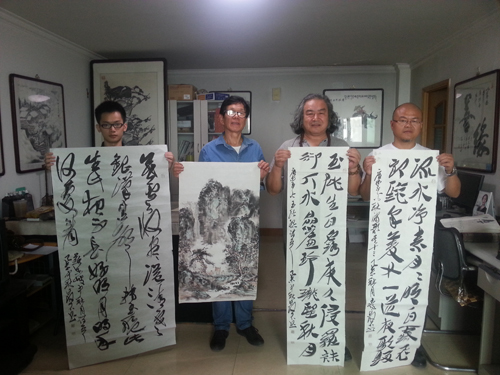 9月20日,迎中秋庆国庆,书画家张成银、周兆明、李天路来藏品艺术网参加主题书画笔会。