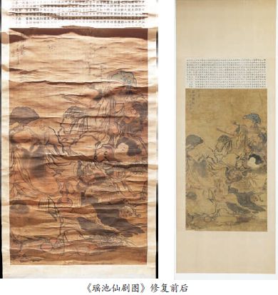 托画心的工作顺利完成后,此次赴英的修复任务也接近尾声。经过一个月的辛苦工作,明代张翀《瑶池仙剧图》又重新展现在我们面前,当然,它已经比之前更完整,更能体现出该作品的艺术性。