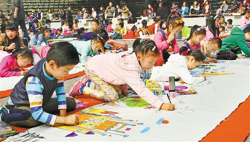 11月7日,重庆市第二届少儿书画艺术节在市少年宫开幕,200名少年儿童现场用书画展示才艺。 据悉,在为期一个月的活动期间,将陆续开展书画现场展示、书画作品展、书画艺术现场嘉年华等8大主题活动,部分优秀少儿书画作品还将通过现场爱心义卖的方式,为贫困山区少年儿童筹集书画创作基金。 记者 李幸 魏中元 摄