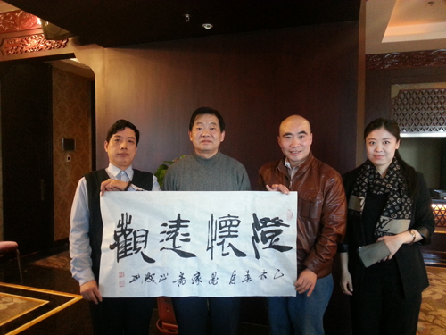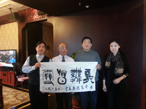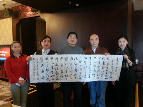 书法家刘正焕(右2)作品被与会嘉宾收藏
