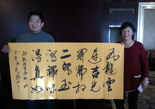江苏省公务员书法家协会理事、无锡市晴晖书画院刘正焕院长(左)作品被玉玺收藏家李厚荣女士(右)收藏