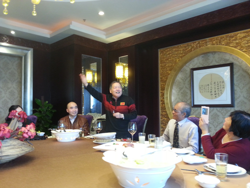 藏品艺术网北京2月24日讯 昨天是羊年春节假期的大年初五,由中国艺术家企业家联合会组织主办的羊年新春联谊会在北京唐人汇举办,联合会龙蛟主席与李玉萍秘书长主持了本次活动,北京市高检原检察长秘书、高级检查官、中作协会员、诗人白锡喜(字仲白)先生,军旅书法家施永才大校,江苏省公务员书法家协会理事、无锡市晴晖书画院刘正焕院长,中国铁路文工团歌唱演员、主持人郭海军,玉玺收藏家李厚荣女士携女儿徐佳女士,女歌唱家景珊女士、北京中视环亚影视发行总监崔英子女士携家人,郭忠先生携爱子,与藏品艺术网执行总编辑王泽瑞出席了本次招待活动,席间艺术家现场挥毫泼墨,作品赠送与会嘉宾,嘉宾们现场也纷纷献艺,表演了即兴诗歌朗诵、古筝独奏、歌曲独唱等节目,欢声笑语中品大家红酒、吃饺子,整个活动圆满成功。
