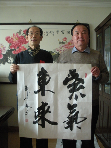 藏品艺术网北京3月4日讯 今天上午,社区生活周刊文艺部副主任、书法家柳君在藏品艺术网书画艺术委员会副秘书长、书法家韩山林的陪同下来藏品艺术网木樨园运营部笔会,创作“铸辉煌”、“笔墨情”、“厚德载福”、“紫气东来”、“善缘”、“天命”等多幅书法作品,喜迎羊年元宵佳节的到来。