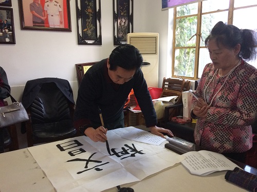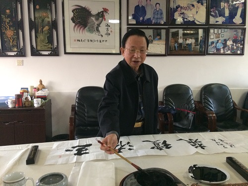 原中煤集团董事长、中国保健协会原副理事长卫国福教授在笔会活动现场挥毫创作