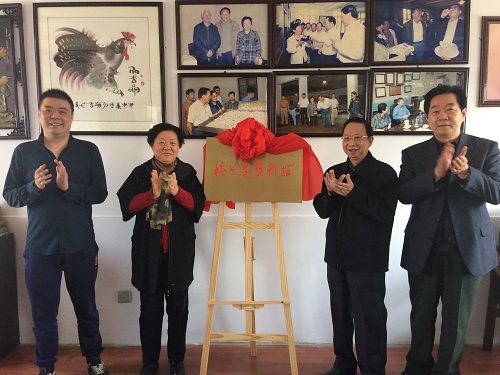 4月13日下午,原交通部副部长忻元校(右2)与梅兰春酒厂董事长、江苏省食品行业优秀企业家刘秀兰女士(左2)共同为梅兰春艺术馆揭牌