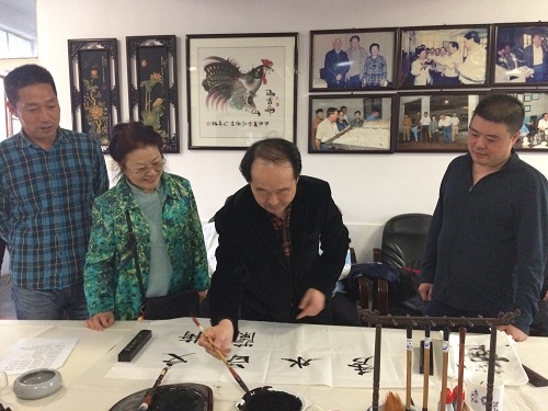 中国管理科学研究院田志强院长(右2)在笔会活动现场挥毫创作