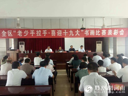 “老少手拉手•喜迎十九大”书画比赛表彰会现场 9月24日上午,商丘市睢阳区”老少手拉手·喜迎十九大“书画比赛颁奖仪式在商丘市十一中举行。仪式上,睢阳区原政协主席、区关工委执行主任杜秀云同志作重要讲话,对获奖的师生提出了殷切期望。颁奖仪式结束后,与会人员认真观看了展出的获奖作品,并就一些有代表性的作品进行了切磋交流。 据了解,为了贯彻落实省、市关工委、老干部局《关于举办老少手拉手·喜迎十九大书画大赛的通知》精神,大力讴歌党的十八大以来我国各项事业所取得的巨大成就,充分展示家乡面貌的巨大变化,进一步传承优秀传统文化,睢阳区关工委、睢阳区老干部局、睢阳区教体局在全区举办了“老少手拉手·喜迎十九大”书画大赛。全区中小学校广大师生积极响应,认真准备,踊跃参与。通过自下而上层层筛选和推荐,160余幅参赛书画作品参加区里的评选。经由书画名家和评审组的认真评选,共评出一等奖10名、二等奖20名、优秀组织奖6名。(任洪成)