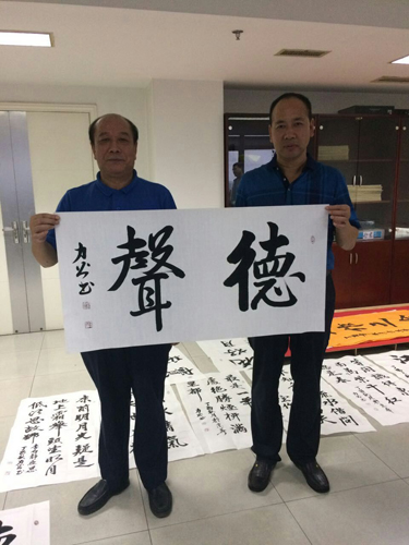 书法家周春华(左)创作的“德声”书法作品被北京市水产业商会常务副会长、公共关系部马战利部长(右)收藏
