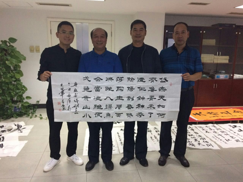 9月27日晚,藏品艺术网组织周春华、李清虎、马战利、高渡、王骊丁、刘宝军等一起书法笔会,喜迎党的十九大和国庆中秋双节的到来。图为参加活动的部分嘉宾在李清虎大校书写的作品前合影