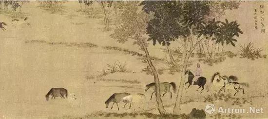 再一个就是后门造,咱们这儿的(北京),在烟袋斜街。这种造假都是在民国,民国以来造的。他们造假的特点也是比较容易看到的,大部分都是臣字款,仿乾隆画院的臣字款的东西,像郎世宁、钱维城、蒋廷锡等等。落款都是臣钱维城,臣××,上面盖上乾隆玉玺,“豆腐干”一盖,水平不高,装裱得挺讲究。它这个题材,有手卷、大条幅、中堂、四条屏,有装镜框的,有裱轴的,册页少,还有扇子。扇子,它是用红木做的扇子股,大股的外头大部分都刻上“于敏中”之类的人名,都是乾隆时期内廷供奉写的字,添金,刻上。里面打开都是纸扇,一面画一面字,大部分也都是臣字款。乾隆画院倒不仿别人的,就仿郎世宁的百骏。这个张葱玉跟我讲过,他的一个朋友真上过当。解放以前,他的一个朋友从上海来北京,找北京某位先生做买卖,这位朋友和张葱玉一起来的,在活动当中有事就分开了,不可能老在一块儿,一块儿来就为做个伴儿。这位先生一看该吃他了,说是有一件东西你别跟张葱玉说,让他看不合适,我不跟他讲。说是有一个郎世宁的手卷,这个朋友动了心想去看看,就甩开张葱玉,被领着进了一家大宅门,很讲究,几进院子。一个老头出来了,先烧香、洗手、把桌子擦了又擦,垫上包袱皮,打开来是郎世宁百骏,捣饬的较好,可能重新装裱过了,用红木盒子装着。也不知是几条金子,这位朋友买好了拿到上海去了。没过多久他就和张葱玉说了,张葱玉一听是郎世宁百骏,就说别看了,假的,后门造。这朋友也急了,拿来一看,果不其然。因这是北京造的假,南方人见的比较少,所以能蒙人。