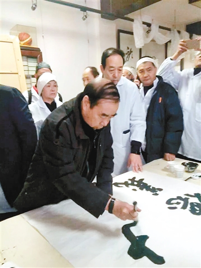 陕西人知书艺,陕西人都推崇三大,师从三大门下的都引以为荣,家有三大墨迹的视为宝。我初遇三大在1984年,见他头大口大臀大,其相如虎,敬畏而不敢前去搭讪。后,满城匾多是他字,我一路慢走,一手在口袋里临摹。至今相见过三次,说过五句话,那半句话是我在车上他在车下,隔帘说:“你好……”车就开了。人皆议论三大嗜酒好烟,贪卜喜乐。凡事尽兴性,一任放纵,我听了叹其正是天生艺术;没嗜好者岂入艺门,不放纵者难成大果。历来俊才性情逸放,三大生于现时,若如李白挂剑长行,是盲流闲汉,若如王维笑傲林泉,哪里又有一个辋川?三大以平常人的平常玩事后养心性,正合了俗人喝茶,僧人喝茶是禅,人家不会糊涂,才学糊涂、难得有糊涂,似我原本糊涂,岂不反糊涂了?