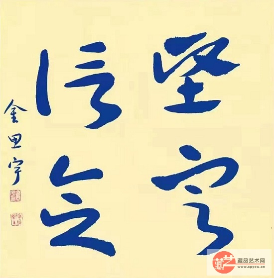 金思宇先生的行书:《立德树人》《学无止境》、《军魂》和《中华儿女》、《居高声自远,非是藉秋风》等作品,挥毫自如,一气呵成。从审美的角度看,极具动态之美,其笔势时徐时疾,快慢有度,富节奏感,依稀古典乐曲中的“行板”。金思宇用墨讲究,有浓墨涂抹、浑厚丰腴,如《竹松轩》和《翰墨缘》等;有惜墨如金,笔画纤细俊秀,如《知足常乐》、《奋斗》等。这笔画的粗细,用墨的浓淡,无不与汉字的涵意紧密相连,令读者赏心悦目,回味无穷。