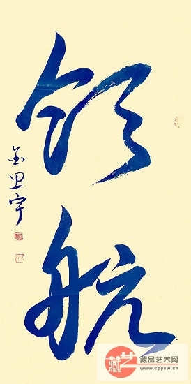 金思宇的隶书作品如《曾经沧海难为水,欲上高楼且泊舟》、《大有作为》、《忠义》、《中国魂》、《共同富裕》等,继承了中国碑文和隶书的优良传统。与篆书取纵势不同,隶书取横势,因此它的结构表现出一个明显的特征,即竖面短而横面或横斜面的笔画长,且横面与横面之间的距离变窄变匀,横面排叠整齐极具“匀画”之美。此外,所谓的“蚕头燕尾”、“一波三折”的运用,金氏隶书则驾轻就熟,体现完美,毋庸赘述。