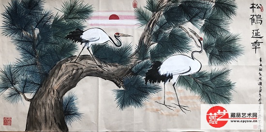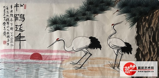 2022年1月1日张国富原创写意作品《松鹤延年》 规格:138X68CM
