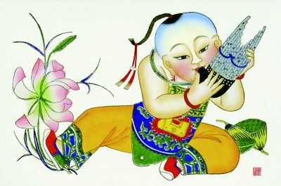在年画中,最显著的是儿童画。宋画小孩儿的头型往往是上大下小,圆里有方。桃花坞最早小孩儿的头是这样,宋瓷娃娃枕和杨柳青年画都可见到这些特点。清末画家钱惠安等,都曾到过杨柳青和桃花坞,在艺术和题材上给民间年画带来一些好处,留下不少作品。但是也带来一些不健康的东西,如《洗桐图》,有的形象似上海小瘪三。(注:《洗桐图》,前人画作,画的是元代画家倪云林有洁癖,每日三洗房前梧桐,以示清高。)