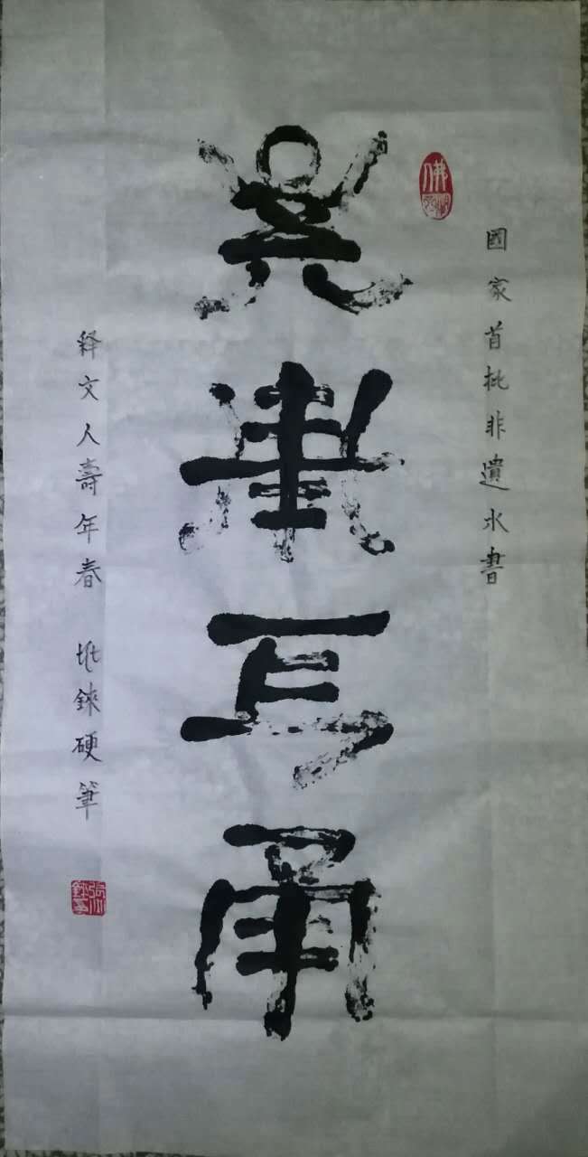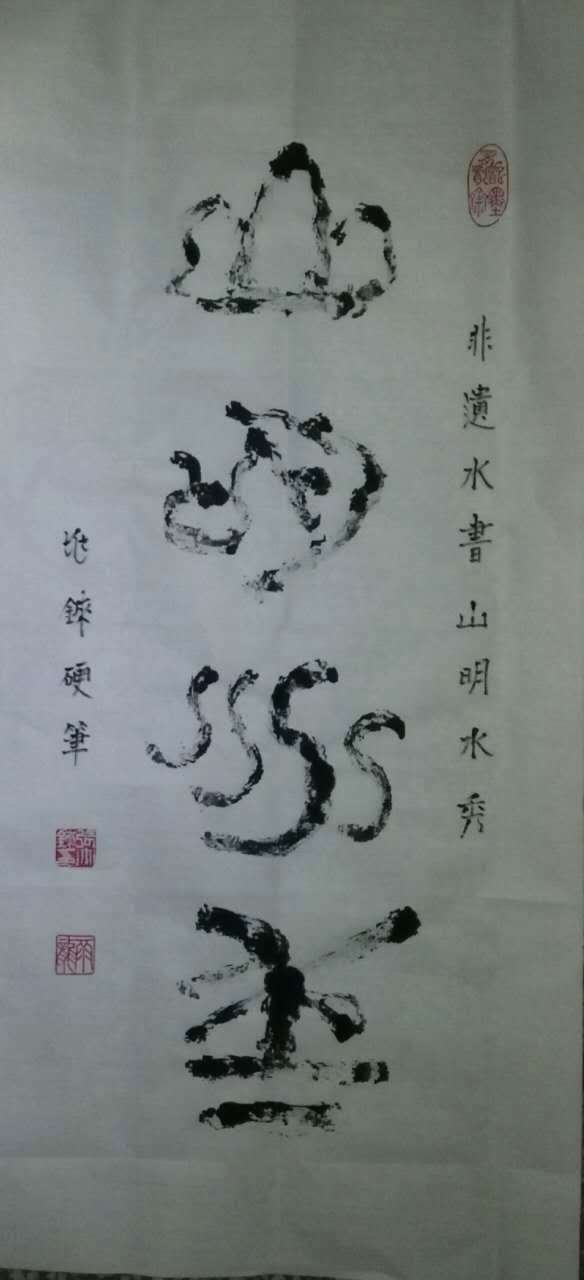 2016年水字书法已在国家版权局登记注册. (作品登记证书登记号:渝作登字-2016-L-00180444).目前我研制的多功能书写笔为中国书法工具家族增添了一份极有价值的载体,从而使硬笔书法有了里程碑式的记载,硬笔书法跌宕奇险,苍郁雄浑,方圆相济,疾涩相兼,有着强烈的时代艺术个性,同时也开创了中国硬笔书法的新天地,实现了硬笔书法的中国梦和世界梦。