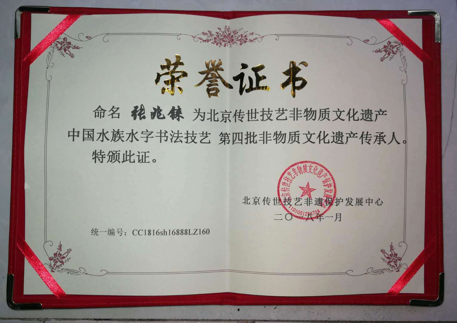 2018年元月被北京传世技艺非遗保护发展中心授予非遗传承人称号.