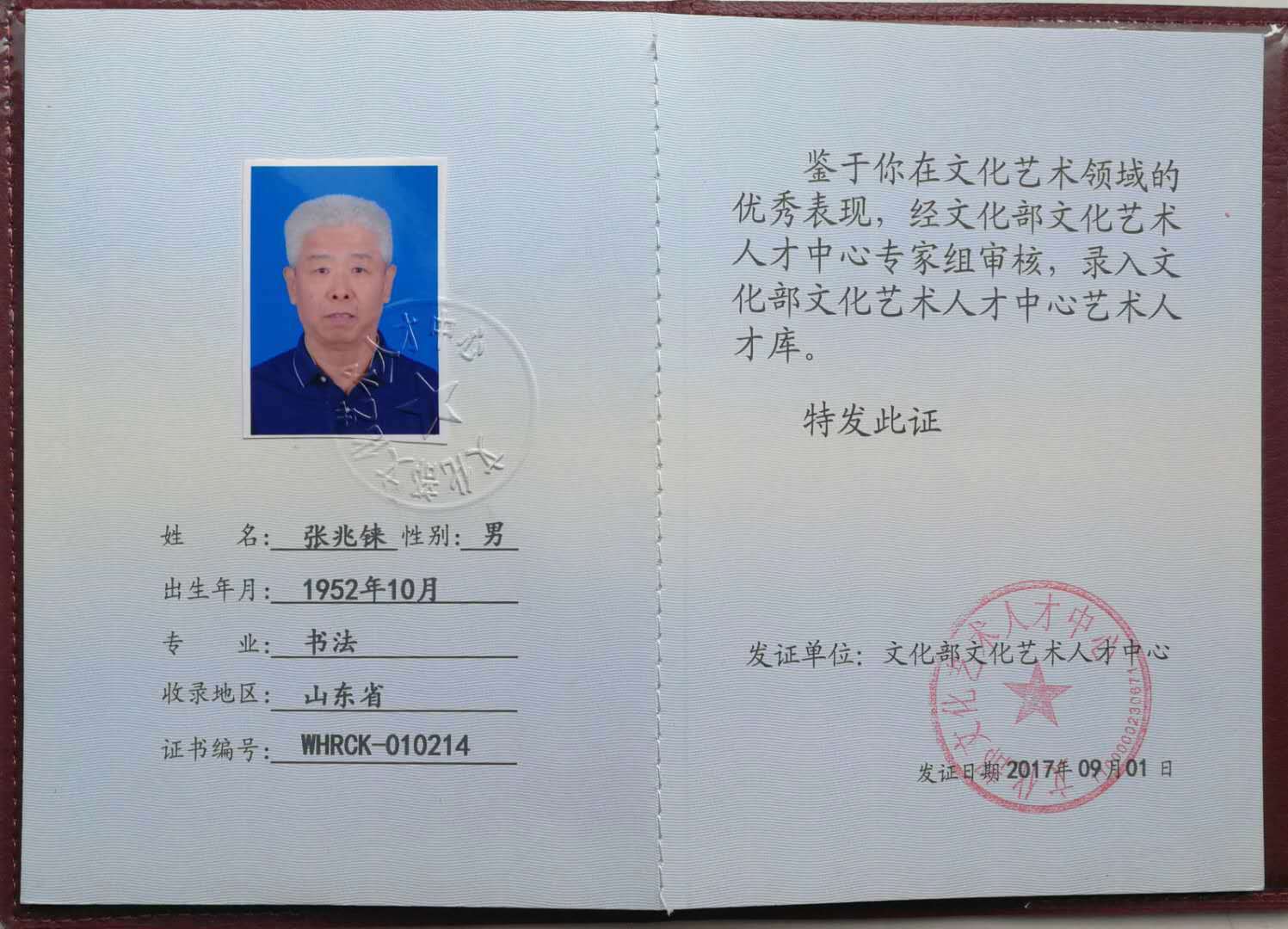 2917年9月1日入选文化部文化艺术人才中心艺术人才库.
