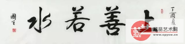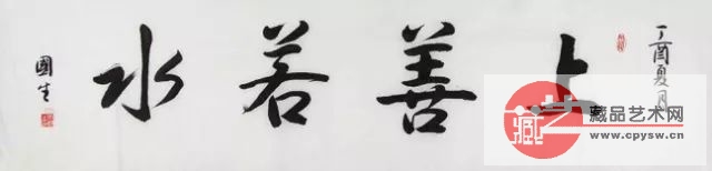 书法家张国生这幅书法横幅《上善若水》,以淡雅的浅灰色为底,笔墨浓郁,字体飘逸,别出新意。"上善若水" 这四个字,出自于老子的《道德经》第八章:"上善若水。水善利万物而不争,处众人之所恶,故几于道。"这款书法表现出强烈的个性追求,凸显异彩纷呈的书写意趣。作品布局严谨,讲究疏密有致,蕴含独特的艺术魅力,呈现出浑然一体的和谐之美。