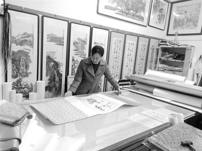 在张郅看来,每一幅书画在装裱后都是艺术品,多年来,对待每一幅作品她都抱着虔诚和感恩的心态去完成,而经过她的手制作完成的装裱,也都呈现出一种近乎完美的艺术形态。“书画装裱的整个过程就像是用石磨在磨豆浆,需要慢慢地一点点磨出它香醇的味道,这个过程可能很漫长,但却让人觉得很舒服。老手工艺就是这样,具有它固有的独特味道,而我正好喜欢做有味道的事情。”张郅说,在手工装裱的过程中,装裱师会再赋予作品生命力,可谓是二次创作,“所以我也坚信,手工装裱永远不会被机器装裱所替代。”