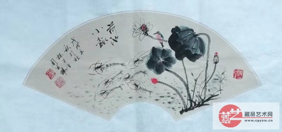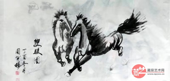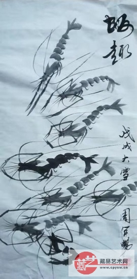 周开畅的画家才华,也是源于书家之成。他把书法的气韵转迁于绘画创作,善工笔,能写意。绘画题材广泛多样,随手取来一物,既可入境成美篇。写意成马,有大师徐悲鸿马画的精气神。水墨绘虾,绝是先贤齐白石虾画的妙在似与不似之间的成就。花鸟禽兽,又善以雅彩描绘,画质接地气,悦人目动人心,除了技法高达,还有智慧涌成,丹青之功,亦有大名。