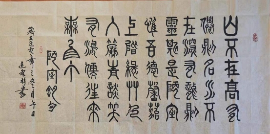 多年来在完成为党和国家领导人日常服务和管理工作外,视书画艺术为终生追求!自强不息、潜心苦学、恒而有志、孜孜追求!特别是写意甲骨文书法深受广大同行的赞誉!40多年从未间断。多幅作品作为外交部国礼赠送美、日、韩等多国知名政要。《泌园春-雪》被人民大会堂收藏。《赤壁怀古》被天安门城楼收藏。