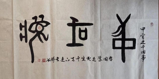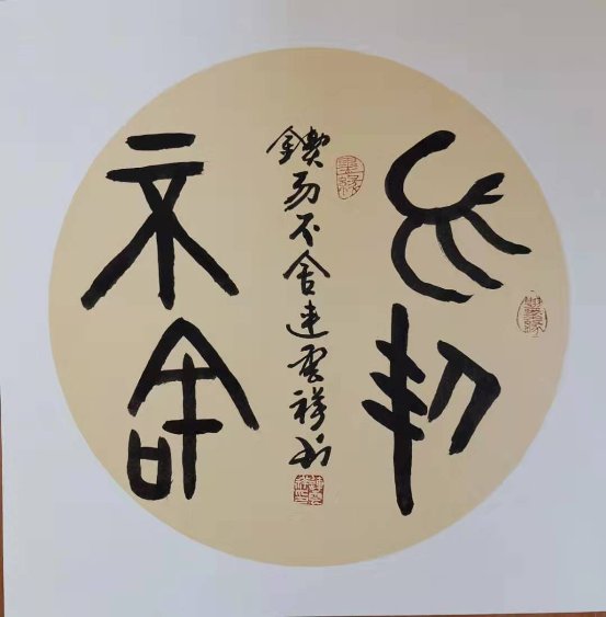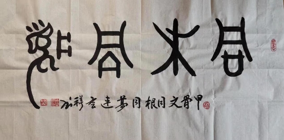 写意甲骨文《寒上风高征鸿归》被天安门国旗护卫队收藏,另一幅被中东二十六国经济顾问朱帝先生收藏。