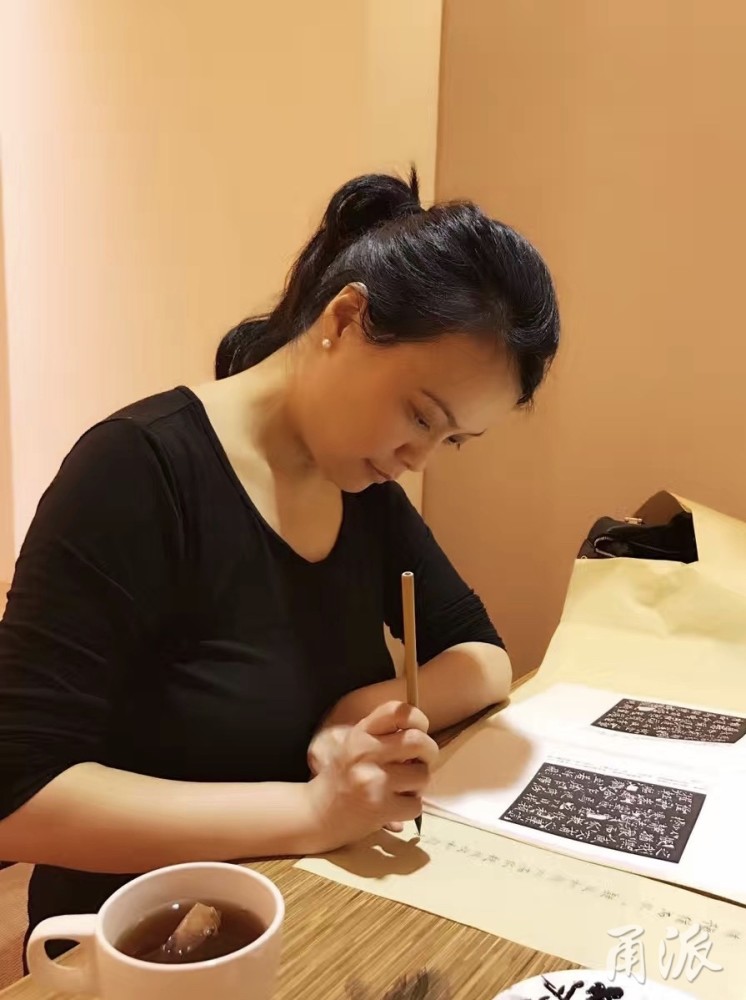 作为宁波知名女书画家,瞿蓓在潜心于书画创作的同时,亦丝毫不敢忘却艺术家作为社会一员的责任。除了热心于书画艺术的传承和推广外,瞿蓓还热衷社会公益,坚持五年进行书法公益办班,作品被选“荣宝斋”保真慈善拍卖会,又多次拿出得意的书画作品参加全国各地公益拍卖活动,曾将自己一副作品的义拍所得12.8万元全部捐给受菲特台风影响的余姚灾区。今年又组织发起甬上二十多位书法家向宁波援鄂医疗团队捐赠书画活动。