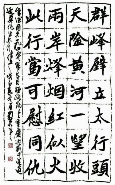 师承著名书法家王冰石先生。初学颜真卿楷书,后上溯汉魏,临习《石门颂》、《乙瑛》、《张猛龙》、《石门铭》及十余种元氏墓志,草书宗王铎、黄庭坚、张旭,深得王铎之神韵。其草书古朴苍劲,潇洒豪放,大气磅礴。