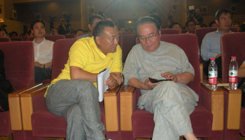 著名艺术家徐旷达(左)与原中央顾问委员会常委胡乔木之子、国情调查委员会主任、延安文艺学会名誉会长胡石英先生(右)亲切交谈