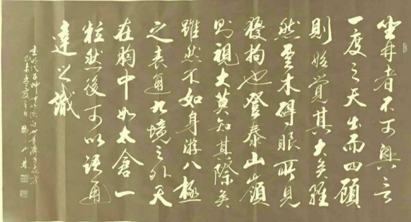 综观韩山林先生之书法,可谓“迟急”因时而变,“曲直”因势而动,“藏出”因形而生,“起伏”因法而行。千变万化,顺其自然。虽常常低调做人,不事张扬,但仍可称之为“实力派书法家的领军人物”,甚而可谓之“书界翘楚”。(文/杨东志)